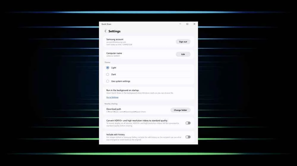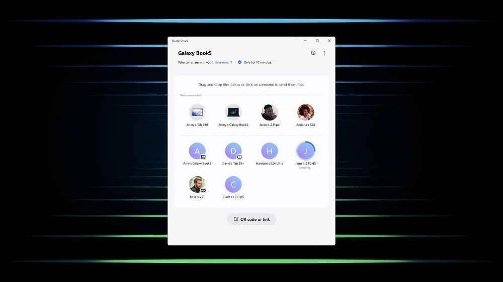 삼성에서 개발한 Quick Share는 삼성 갤럭시 기기에 맞춰 특별히 설계된 원클릭 공유 기능을 제공하며, 필수 시스템 요구 사항을 충족하는 Windows PC도 지원합니다. Quick Share는 간단하고 무료이며 가벼운 유틸리티로, 업무 및 개인 용도 모두에서 파일 공유 과정을 빠르고 원활하게 만들어 줍니다.